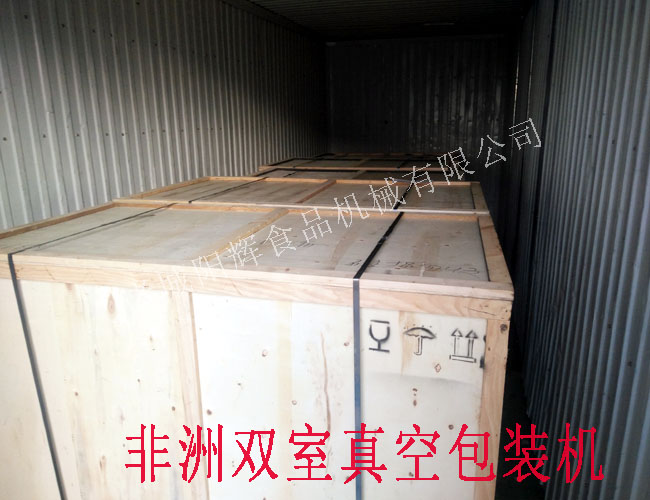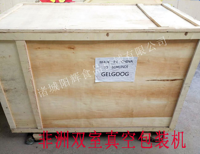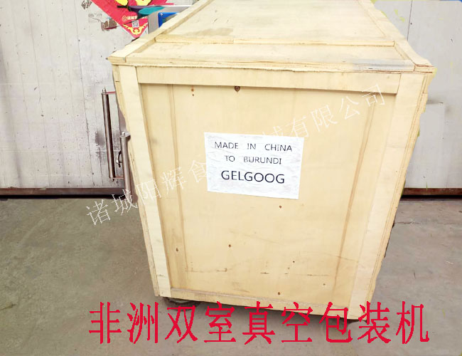 這是一臺雙室真空包裝機,正在打包帶走,它將先乘坐汽車,后乘坐輪船,到達(dá)非洲中部的一個小國,各位客官,請與我一起祝福它一路順風(fēng)吧。